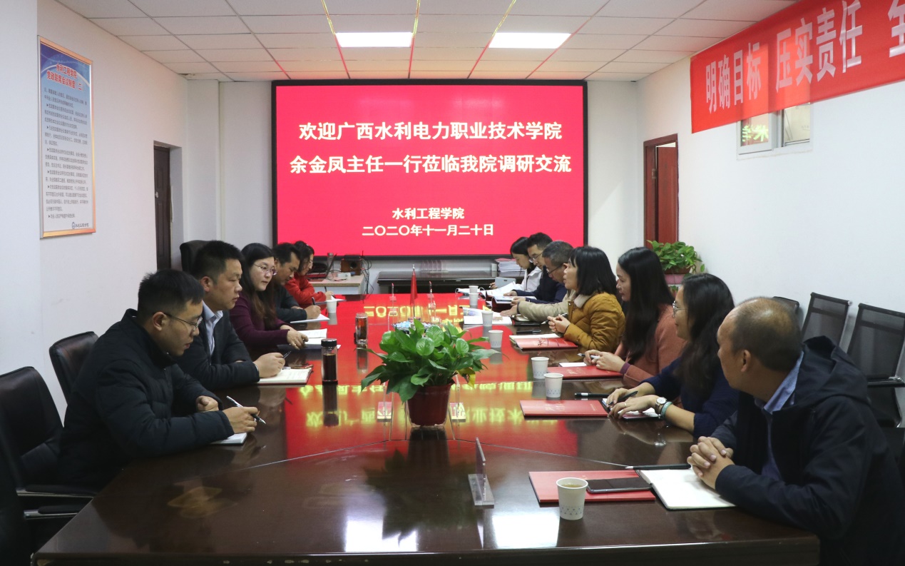 2020年11月20日,广西水利电力职业技术学院水利系主任余金凤一行7人来我院考察交流水利人才培养和创新教学团队建设等工作。水利工程学院院长陶永霞、副院长闫国新出席座谈会,行政办公室、水利工程实训中心、水土保持教学团队等团队负责人参会。