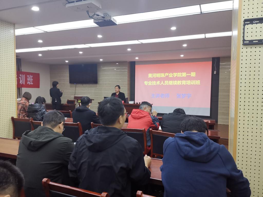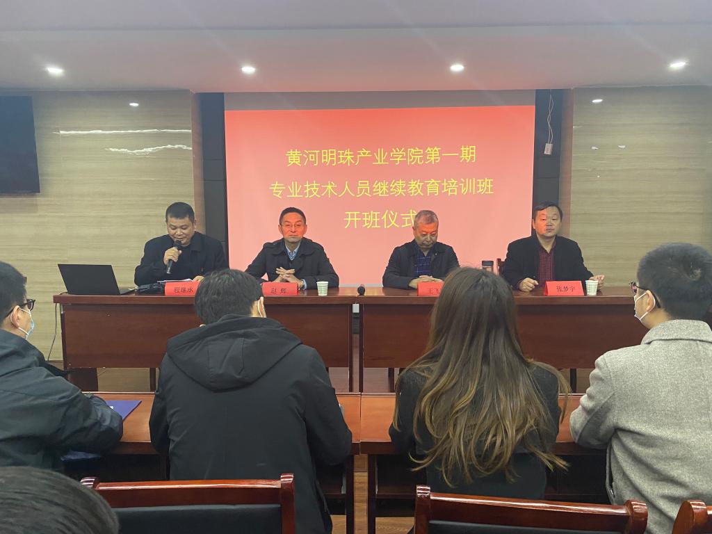 2020年10月18日上午,由我院和三门峡黄河明珠(集团)有限公司(以下简称“明珠集团”)共建的黄河明珠产业学院举行第一期专业技术人员继续教育培训班开班仪式。第一期培训班在三门峡明珠宾馆会议厅召开,明珠集团人才交流中心书记赵辉、人才交流中心主任程继承,必赢3003no1线路检测中心水利工程学院监理专业负责人王飞寒、造价专业负责人张梦宇和明珠集团65名技术骨干参加了开班仪式。