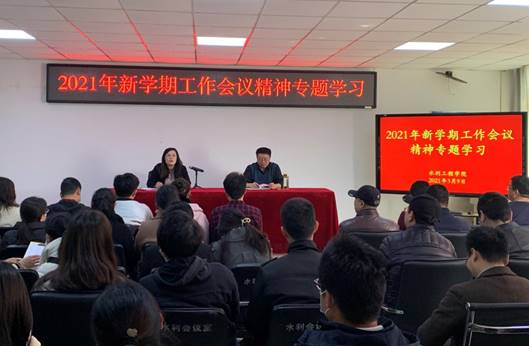 3月9日下午,水利工程学院召开全体教职工大会。学院党总支书记孙天星、院长陶永霞及全院教职工参加了会议。会议由孙天星主持。