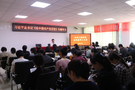 5月11日下午,水利工程学院在SY5310召开习近平同志《论党的宣传思想工作》专题学习会,学院党总支书记孙天星、院长陶永霞及全院教职工参加了学习工作会。会议由孙天星主持。