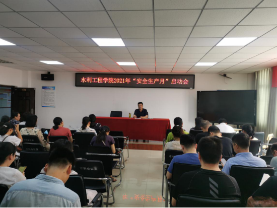 6月15日下午,水利工程学院在SY5310召开2021年“安全生产月”启动会,学院党总支书记孙天星、院长陶永霞及全院教职工参加了会议。会议由孙天星主持。