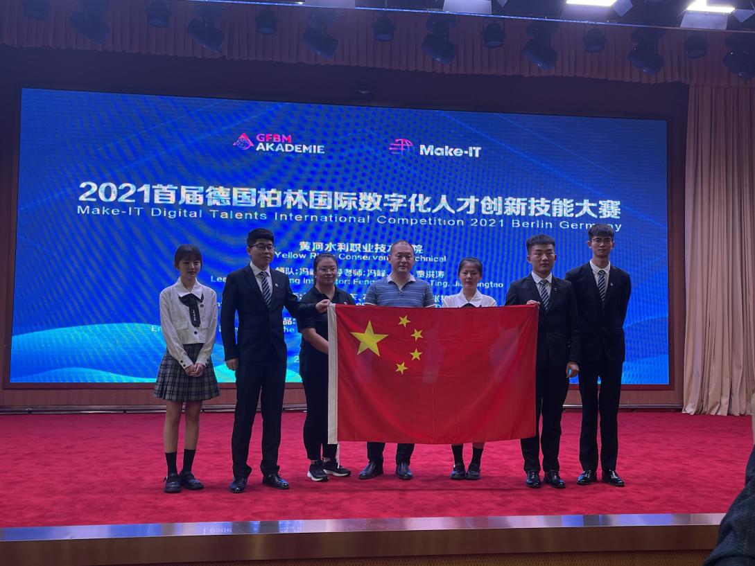 北京时间9月7日下午3点,2021首届德国柏林国际数字化人才创新技能大赛(简称Make-IT大赛)颁奖典礼在柏林、北京和莫斯科三地通过网络视频的形式共同举办。校长胡昊、创新创业学院副院长范龙、水利工程学院指导教师团队冯峰、赵婷、贾洪涛,参赛学生团队孙梦园、王东、石天乐、孔德龙、张校铭等在学校演播厅共同参加了颁奖典礼网络直播。