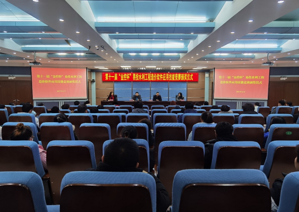 12月24日上午,水利工程学院在实训楼3301会议室隆重举行第十一届“金控杯”易投水利工程造价软件技能竞赛颁奖典礼。水利工程学院党总支书记孙天星、院长陶永霞、郑州金控计算机软件有限公司总经理韦黎、水利工程造价课程教学团队教师、参赛选手和学生代表100余人参会。