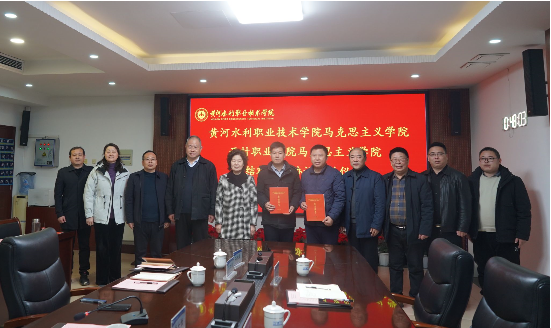 在签约仪式上,必赢官网马克思主义学院院长焦红强和开封职业学院马克思主义学院院长马纪岗作为双方代表签署了结对共建协议书。