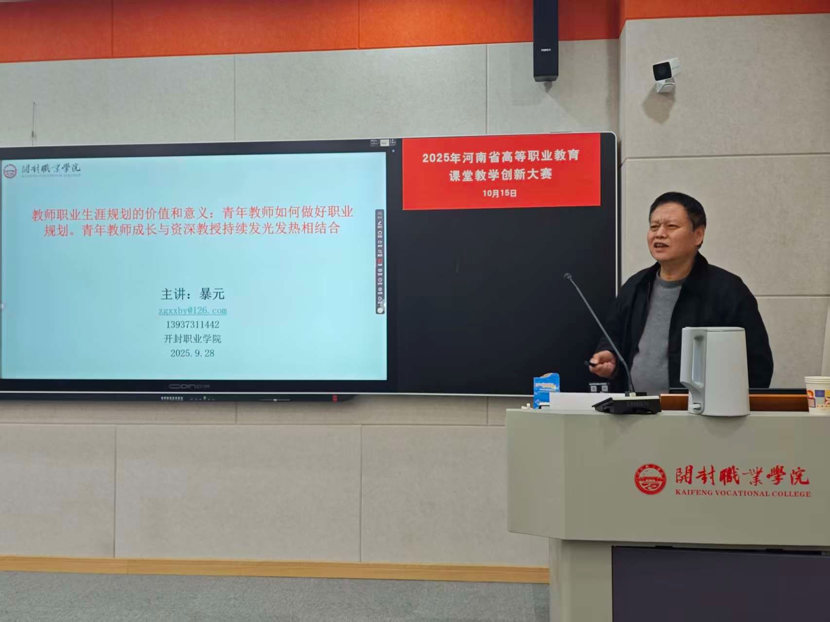 2025年10月22日下午,我院高维峰副院长、曾铭老师应邀赴开封职业学院参加两校共建科研教学提升活动,先后听了河南师范大学教授暴元、河南农业大学教授陈娱作的两场科研教学提升主题报告。报告会后,两校思政课教师围绕思政课教学技能大比武备赛、高水平科研项目申报与准备、教科研论文撰写、思政课教师职业能力提升等主题进行了研讨。