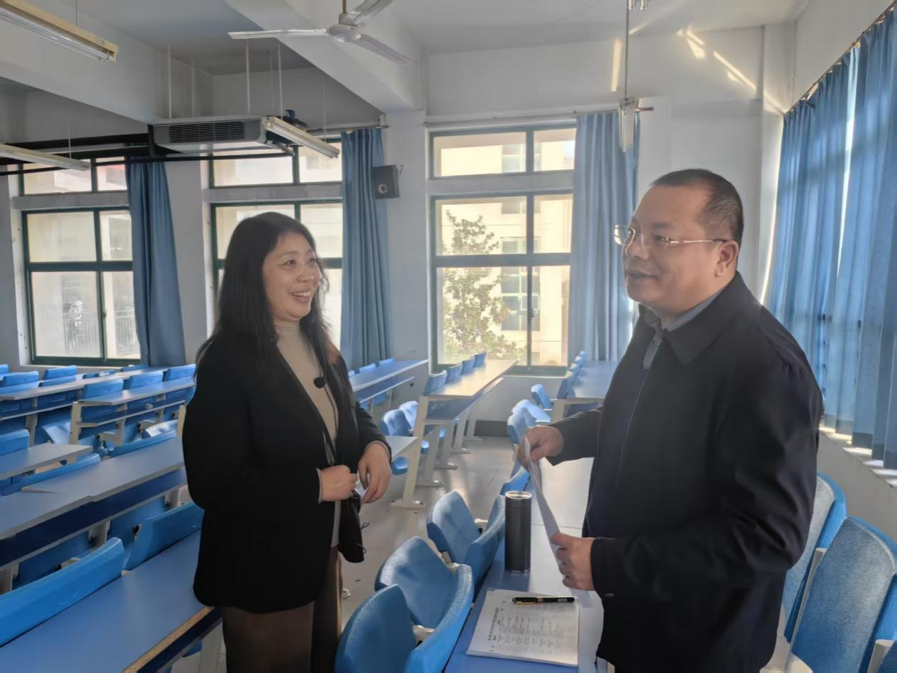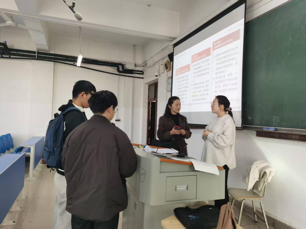 按照中共河南省委教育工委办公室 河南省教育厅办公室《关于开展2025年度全省高校秋季学期思政课“大听课 大调研”活动的通知》要求,11月19日上午,第六调研组专家河南理工大学马院党委书记洪振涛、河南科技学院马院院长王冰蔚、信阳农林学院马院党总支书记王晓明、河南应用技术职业学院马院院长张振华到必赢官网开展思政课听课调研工作。马克思主义学院领导班子成员参与听课调研。