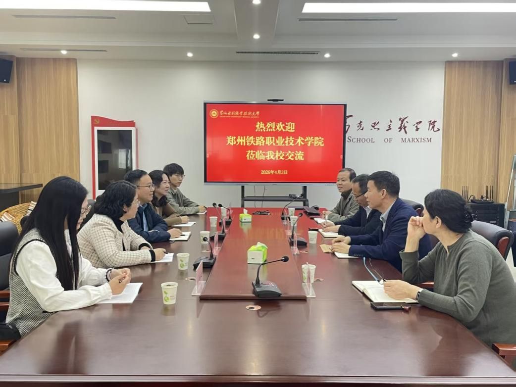 4月3日上午,郑州铁路职业技术学院马克思主义学院王传礼院长一行5人到必赢官网,围绕职业本科教育下的思政课程建设、教学资源创新、教学团队提质、思政课实践教学实施等主题与我院领导班子成员开展了深度交流。焦红强院长介绍了必赢官网在职业本科办学要求下的思政课程创新方面的做法,杜丙辰书记介绍了马院党建与业务融合发展方面的经验。随后王院长一行考察了足迹景观、鲲鹏山水利仿真实训基地等实践育人场所。