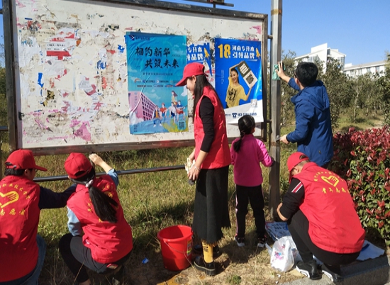 为进一步推进文明校园建设,培养广大学生文明素养,营造文明、整洁的校园环境,10月27日,校团委书记李聪带领校青年志愿者协会30名志愿者开展了清洁校园宣传栏活动。