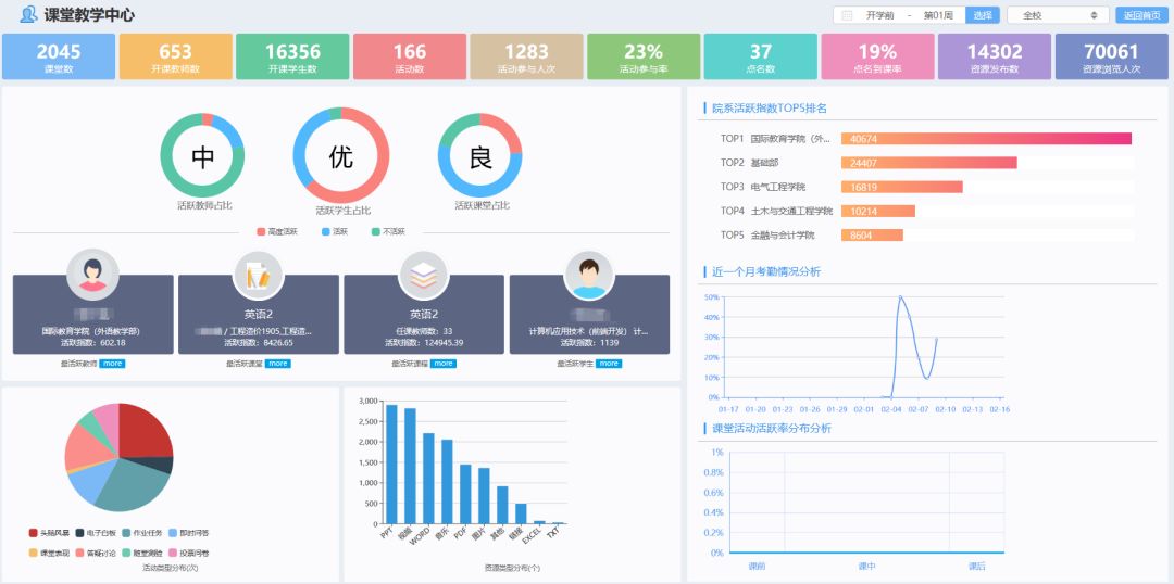 经过多方努力,我们实现了院系全覆盖、专业课程全覆盖、教师学生全覆盖、全时段的线上教学。全方位,多角度支撑信息化教学开展,为教师和学生搭建起了网上教学沟通的桥梁,实现了课堂教学向网上教学的无缝对接。