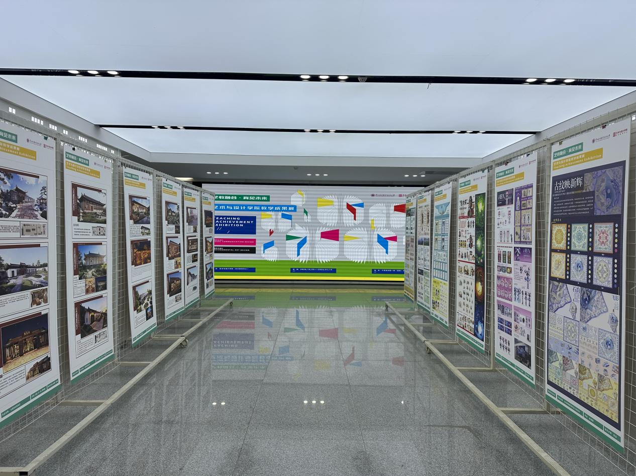 12月23日至1月13日,艺术与设计学院(艺术教育中心)在6号实训楼一楼大厅举办“艺教融合,育见未来”教学成果展。