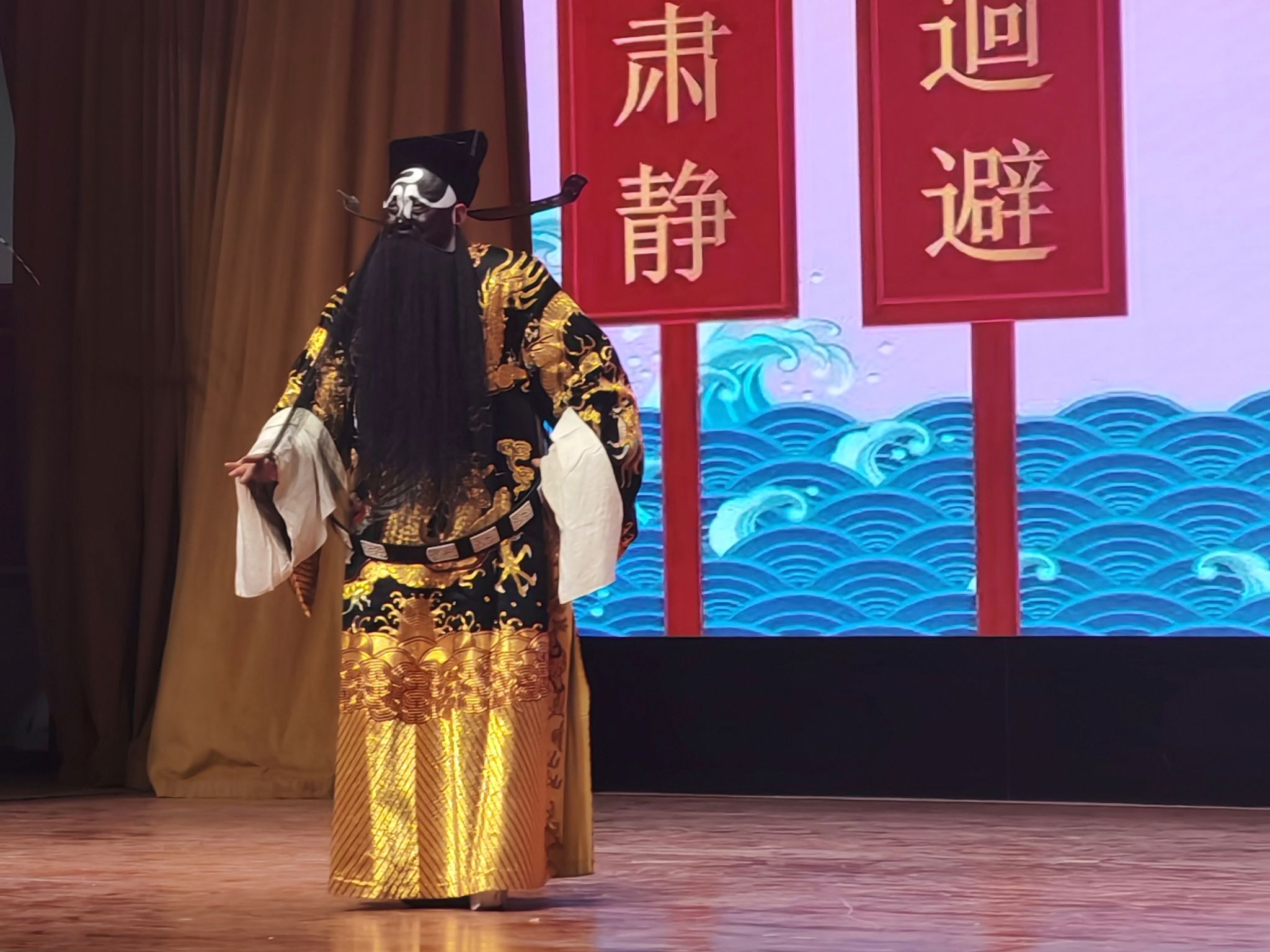 作为本次演出的亮点,多段经典彩唱曲目更是点燃了全场热情。《花木兰》中“刘大哥讲话理太偏”的经典唱段耳熟能详,演员以刚健洒脱的台风、铿锵有力的唱腔,塑造出花木兰巾帼不让须眉的英雄形象,传递出“谁说女子不如男”的豪迈气概《包青天》选段“陈驸马休要性情急”中,演员凭借深厚的功底,将包拯的公正廉明与铁面无私刻画得入木三分,高亢激昂的唱腔直击人心。演出在充满家国情怀《穆桂英挂帅》选段中圆满落幕