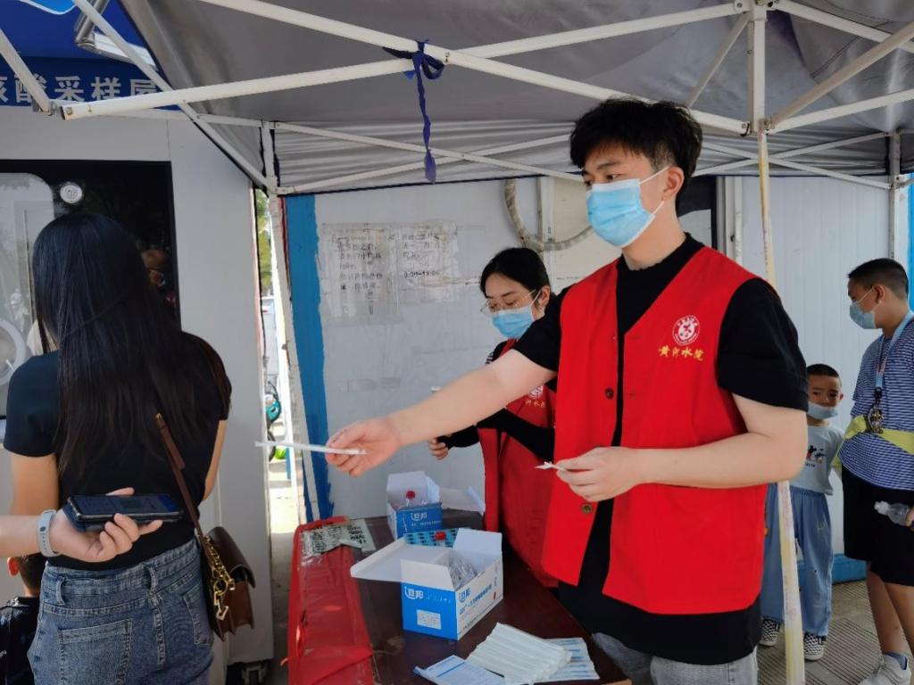 环境工程学院志愿者负责登记宿舍楼出入人员信息